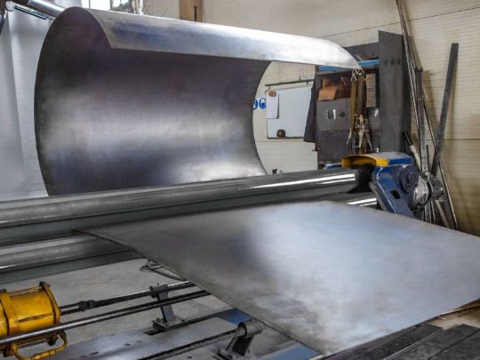 Согнуть даже большой лист металла для нашего производства не составит проблем. Мы используем трех и четырех валковые вальцы, которые позволяют не просто создавать крупногабаритные заготовки, но и: